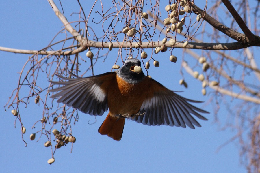 ジョウビタキの空中キャッチ